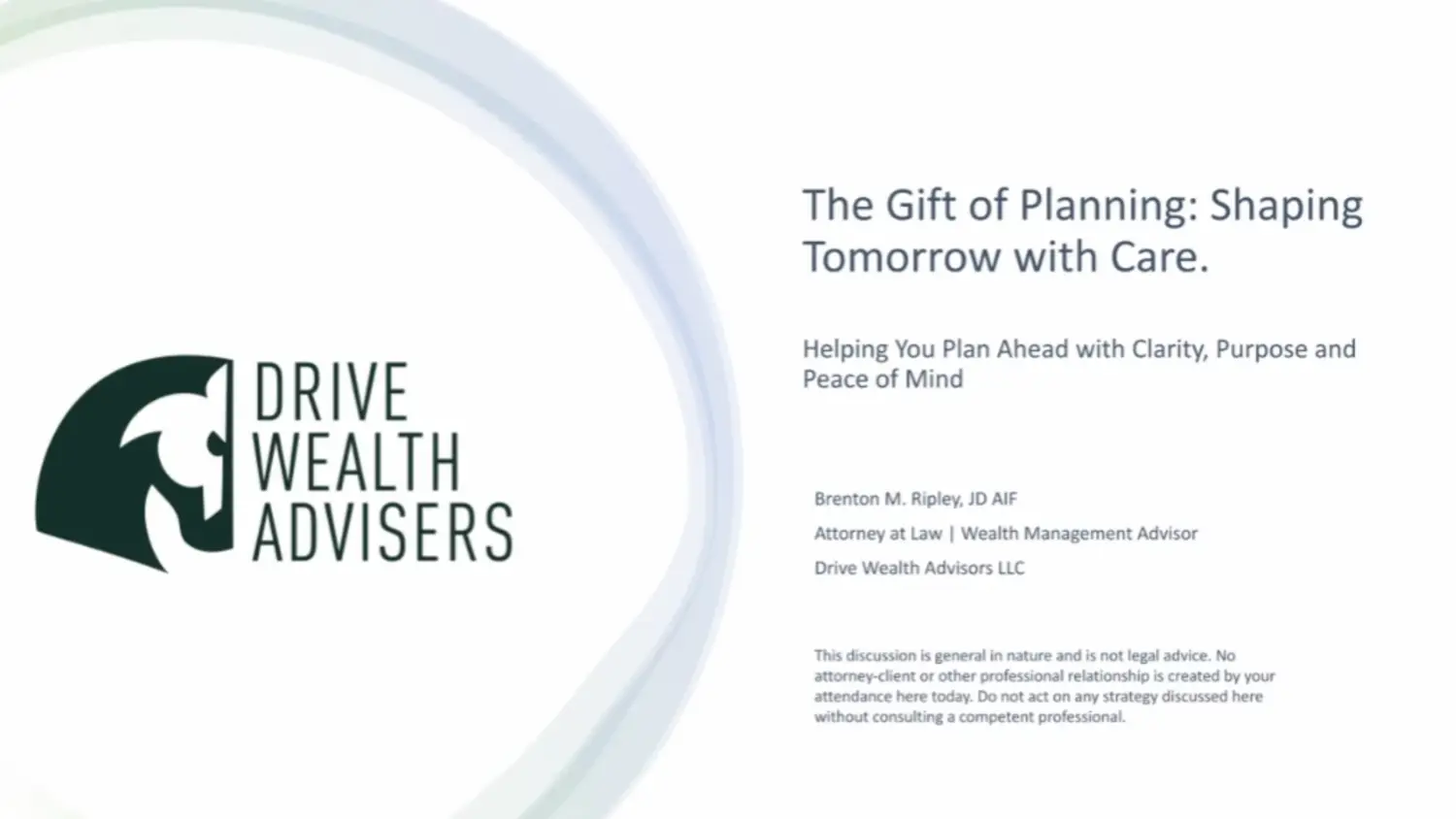 Legal services provided through the independent Law Offices of Brenton M. Ripley, Brenton M. Ripley, Attorney At Law, AIF. Investment and financial planning services available through Drive Wealth Management LLC, a registered investment adviser.